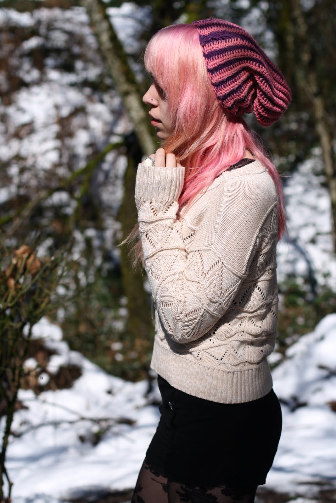 Anyways, I've always loved pastels and I am so happy that they're in style so I can stock up on them. I bought this sweater at Forever 21 on sale! I saw it and automatically wanted it. I've been looking for a sweater like this for awhile, sadly It was too small in the small so I got a large to achieve the over sized look. But even the large wasn't big enough! Oh well, I like it anyways. :]